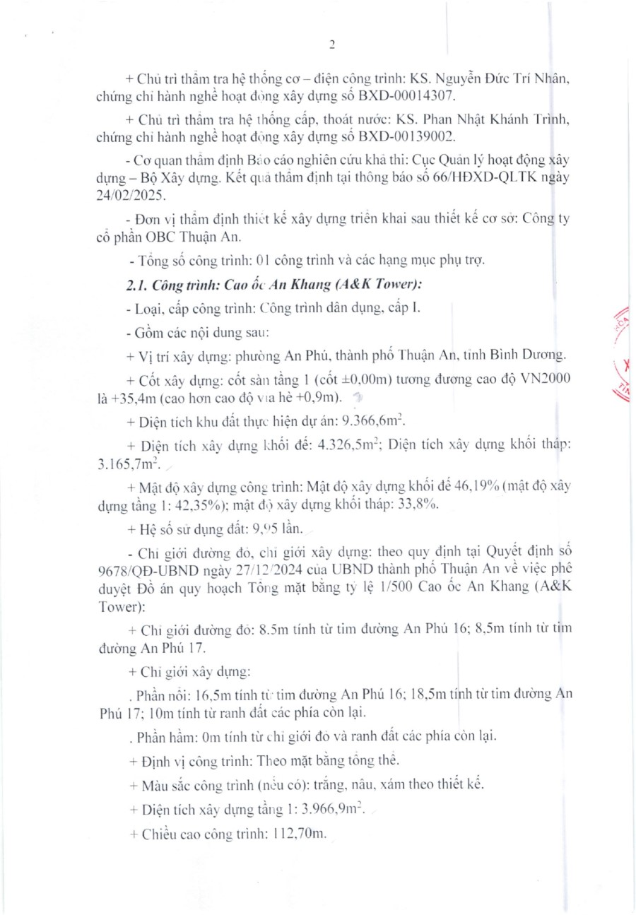| CĐT | Cty Cổ phần OBC Thuận An |