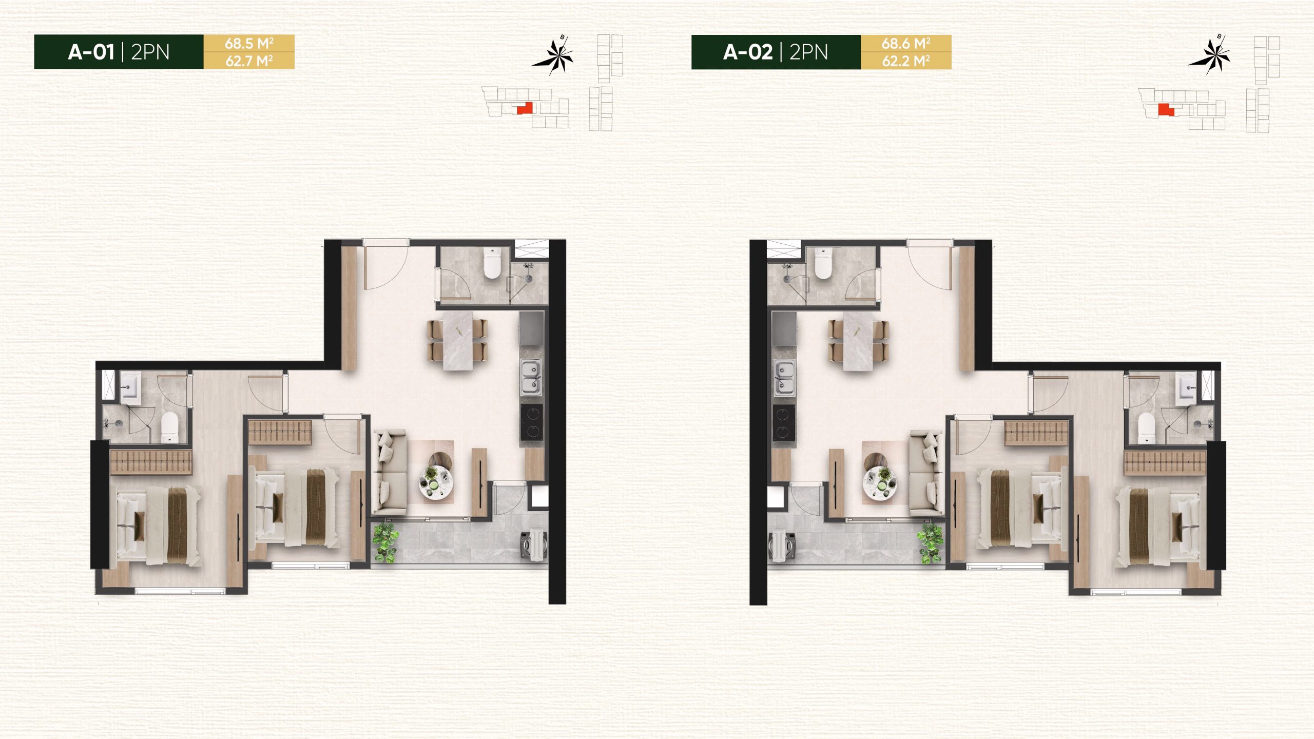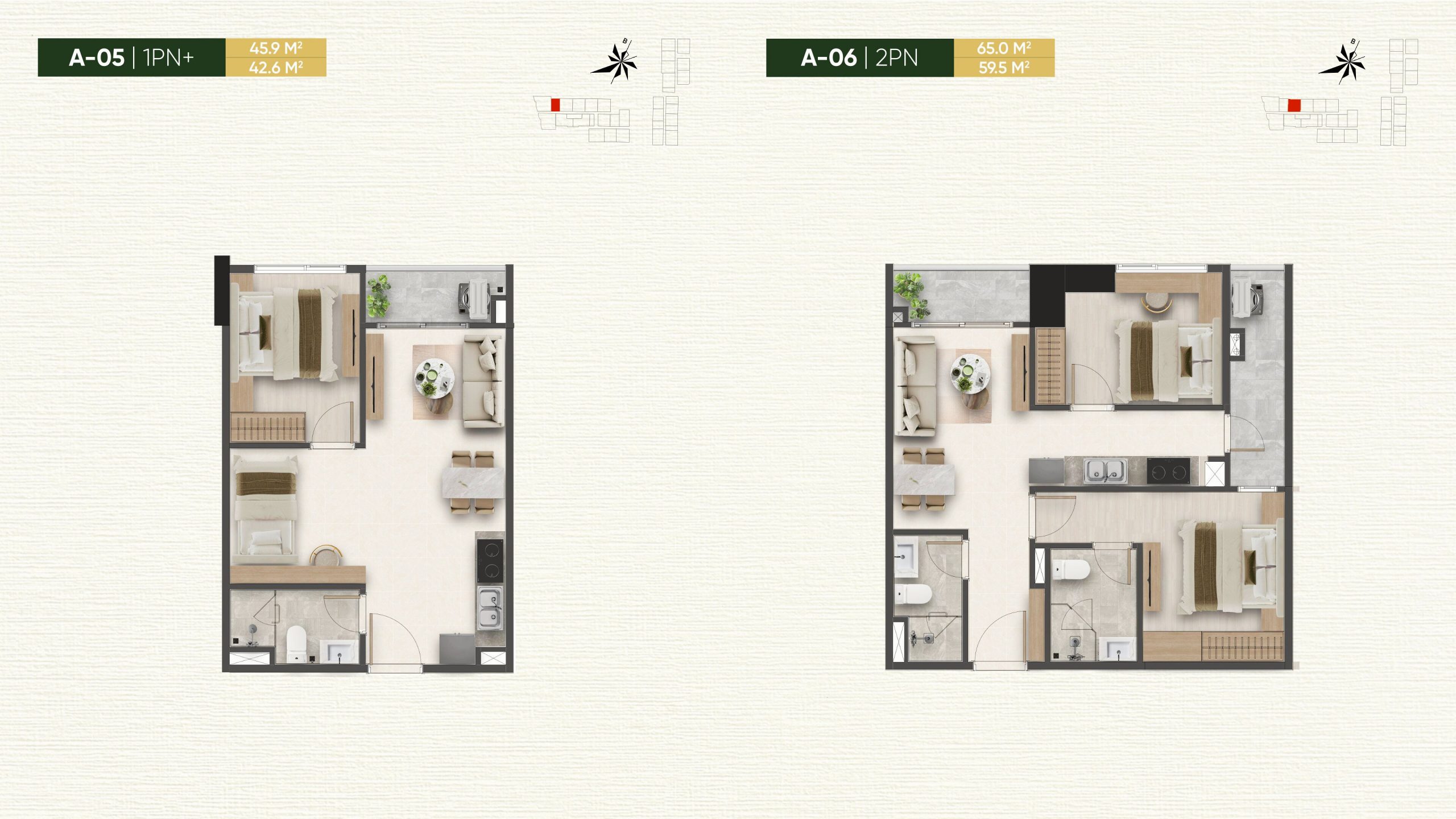 Mỗi căn hộ tại A&T Saigon Riverside được định hình để phù hợp với nhiều đối tượng khách hàng, từ người độc thân, cặp đôi trẻ cho đến gia đình nhỏ. Không gian được thiết kế tối ưu, vừa phù hợp để ở, vừa có thể tận dụng làm văn phòng làm việc tại nhà hoặc khai thác cho thuê.